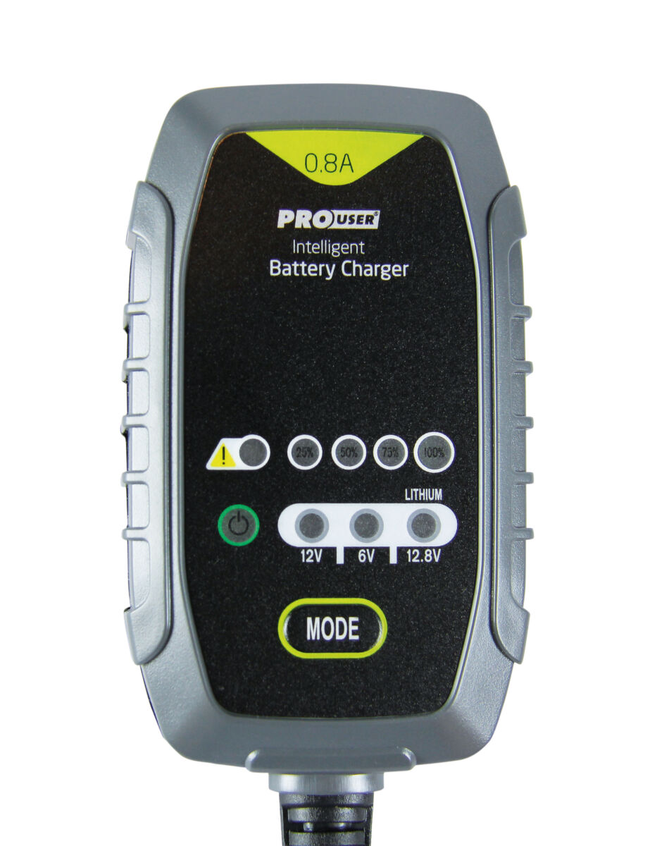 Az IBC800 intelligens akkumulátortöltő tökéletes 6 és 12 V-os kis (motorkerékpár-) akkumulátorokhoz. Akár 0,8 V egyenáramot is generál, és a következő akkumulátortípusokhoz alkalmas: 6 V és 12 V ólom-savas, zselés, nedves, VRLA (1,2-26 Ah) és 12,8 V lítium akkumulátorok (2-15 Ah).