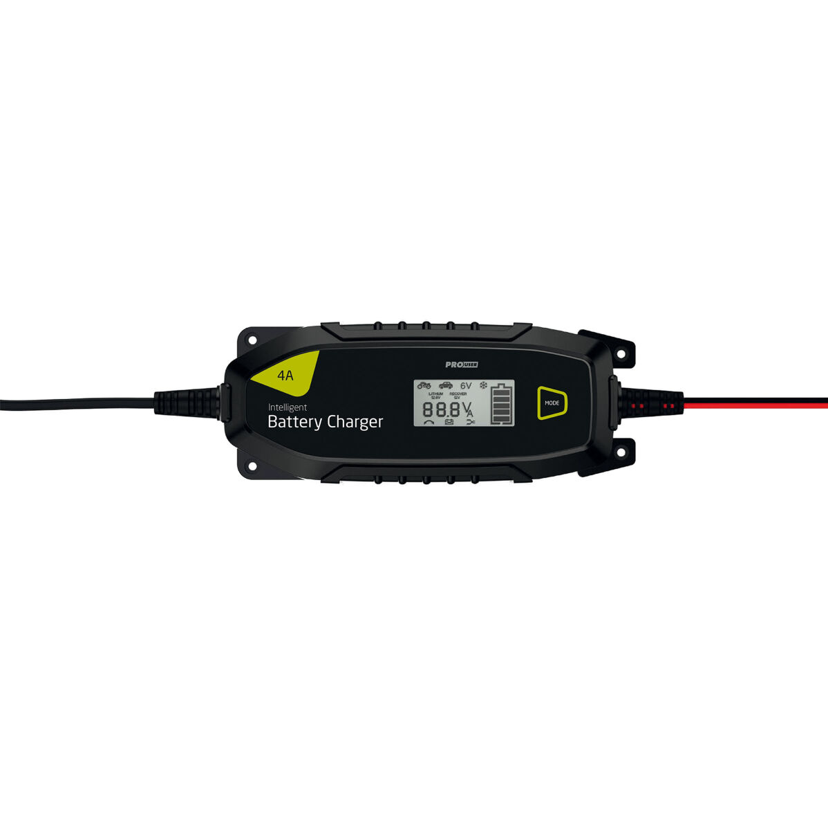 Ez a nagy teljesítményű 4 A-es akkumulátortöltő könnyedén tölti a 6 és 12 voltos akkumulátorokat. Ugyanazokat a funkciókat kínálja, mint az IBC4000B, de Bluetooth-kapcsolat nélkül. A 8 lépéses töltési ciklusnak köszönhetően ez a töltő intelligens töltési folyamatot biztosít, biztosítva az akkumulátor optimális állapotát. A töltési folyamatot a beépített mikroprocesszor vezérli.
