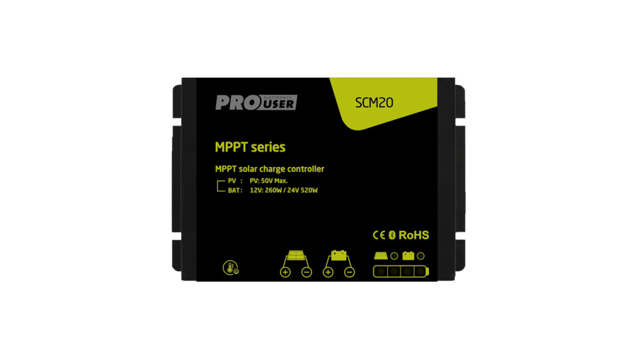 A Pro-User Electronics 20 amperes töltőáram-szabályozója MPPT funkcióval rendelkezik. Az optimalizált maximális teljesítménypont-követő (MPPT) rendszerrel ez a szabályozó akár 30%-kal több energiát is képes kivonni a napelemből, így hatékonyabbá és költségkímélőbbé teszi azt.