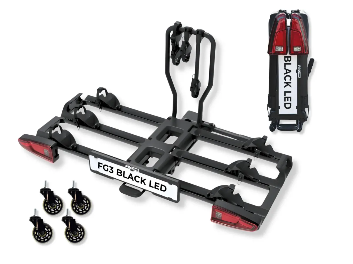 PROUSER Diamant FG3 Black LED vonóhorogra szerelhető kerékpártartó, kerekeken gurítható, limitált széria.