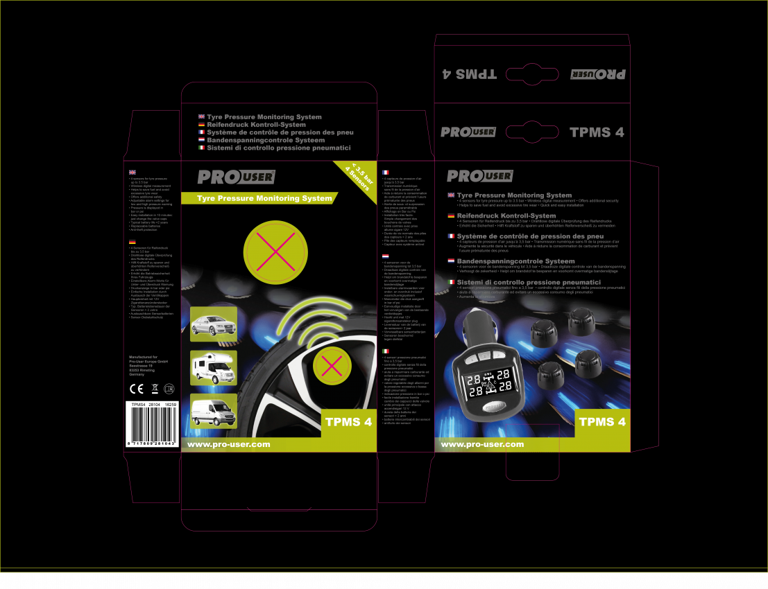 TPMS4 keréknyomásfigyelő rendszer 4 kerékre, max 3,5 bar nyomásig
