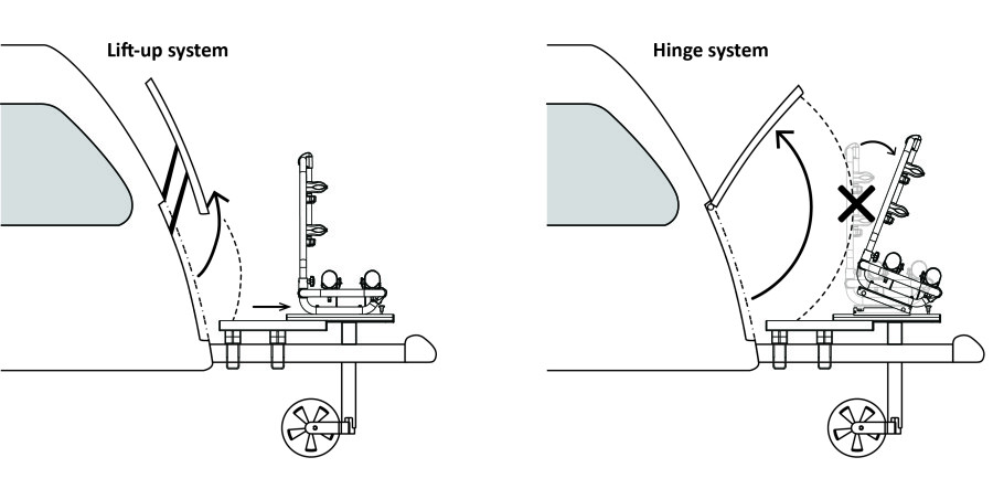 A dönthető adapter egy kiegészítő tartozék, amelyet kifejezetten a BC260/BS260-hoz fejlesztettek ki. Ez az adapter biztosítja, hogy a kerékpártartó kinyújtott helyzetben is dönthető legyen.